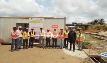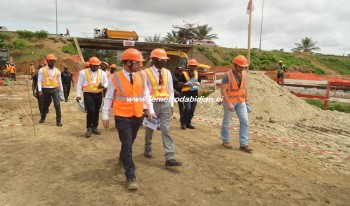 Le président du Comité de Suivi du Plan d’Action de Réinstallation (CS-PAR) et le Directeur de Cabinet du maire d’Abobo en visite sur le chantier du PK 24+800 (Abobo)